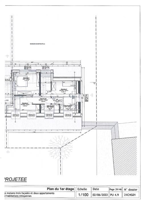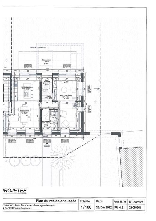 In een groep milieuvriendelijke huizen, te renoveren villa met drie voorgevels, die talloze mogelijkheden biedt dankzij de ruime kamers. De plannen