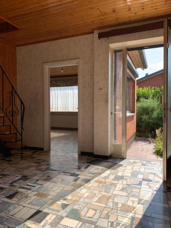 DESCRIPTION : Jolie maison quatre façades avec garage, terrasse et jardin dans un quartier résidentiel comprenant : RDC : hall d'entrée, cuisine, living ouvrant sur le jardin, wc, salle de bain, chambre. Garage et caves sur toute la surface de la maison. 1er étage : Deux grandes chambres et un débarras. CHAUFFAGE : mazout (citerne aérienne de +3.000 litres). PEB : F (474kWh/m2.an). Electricité non conforme. CONTENANCE : 8A39 OCCUPATION : libre à l’acte. RC : 969€ sous réserve du contrôle du cadastre PRIX FAIRE OFFRE APD :200.000€ VISITES : CLES EN L’ETUDE.