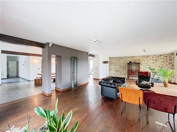 Ontdek in Gesves, in het dorpje Haltinne, dit weelderige stenen huis van buitengewone afmetingen. Ses .