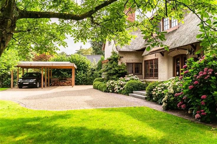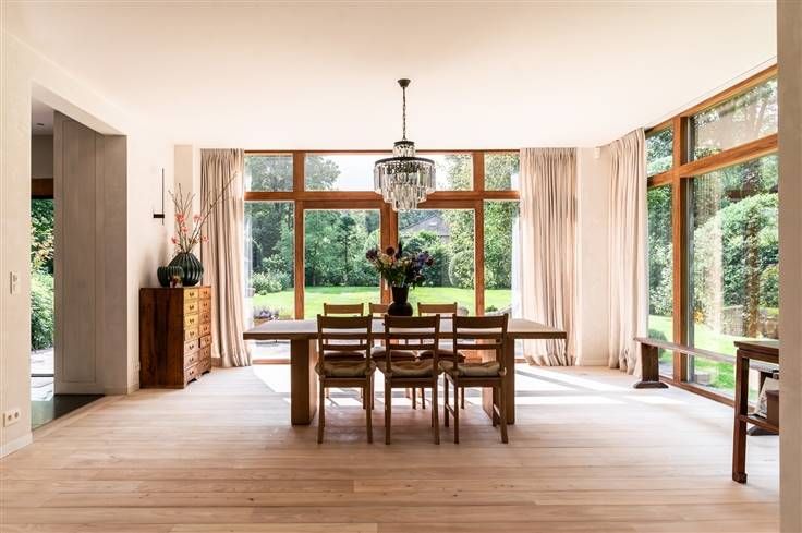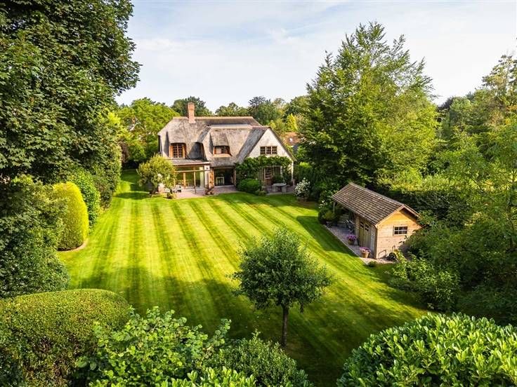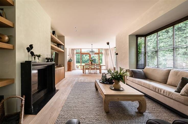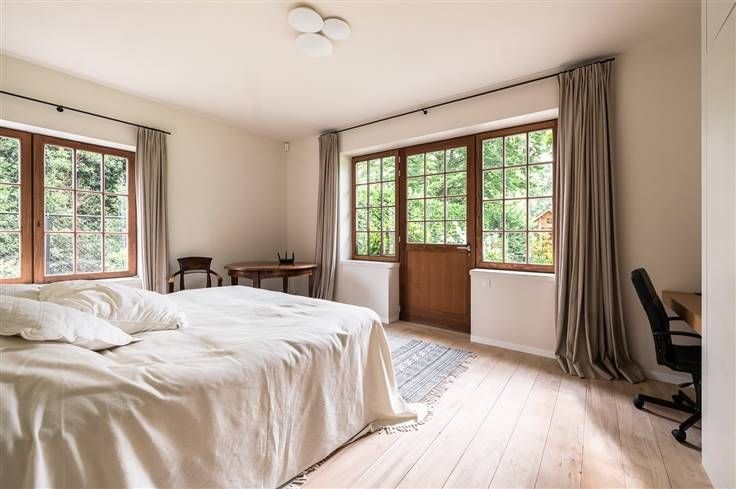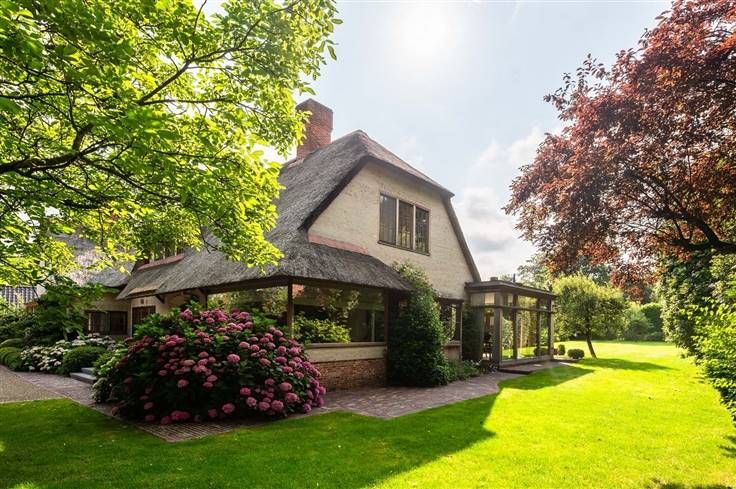 Deze bijzondere villa, een creatie van de gerenommeerde architect Stephane Boens, is rustig gelegen in het prachtige Deurle. Met een zuidwest georiënteerd perceel van 2101 m² en een royale bewoonbare oppervlakte van 424 m², omgeven door weelderige roze en witte hortensia's, biedt deze villa een zeldzame combinatie van landelijke charme en moderne luxe. Het rieten dak en de verzorgde afwerking maken het uniek en geven direct een bepaald cachet aan deze luxueuze villa. Binnenkomen in een open leefruimte met een gezellige zithoek, een living met open haard en een eetgedeelte met naadloze ramen die een prachtig uitzicht geven op de omliggende natuur. De hoogwaardig afgewerkte open keuken, uitgerust met een Aga-fornuis, biedt een betoverend uitzicht op de tuin en beschikt over een charmant terrasje omgeven door rozen en blauweregen. Het interieur is zorgvuldig ingericht met lichte tinten en natuurlijke materialen zodat een ideale match wordt gevormd tussen de binnen- en buitenomgeving. Verder op de begane grond hebben we nog een gezellige zithoek, een bureau en een praktische wasplaats. Een ruime slaapkamer met een idyllisch uitzicht op de natuur en een aparte badkamer completeren deze verdieping. Op elke hoek van deze landelijke villa zorgen de grote ramen en hoge plafonds zorgen voor veel natuurlijke lichtinval en geeft dit een zeer luchtig en ruimtelijk gevoel. Op de bovenverdieping bevinden zich 2 slaapkamers met gedeelde badkamer voorzien va
