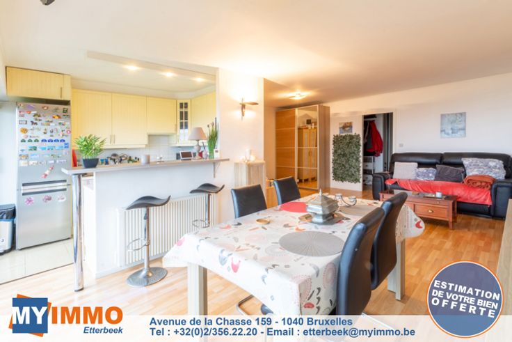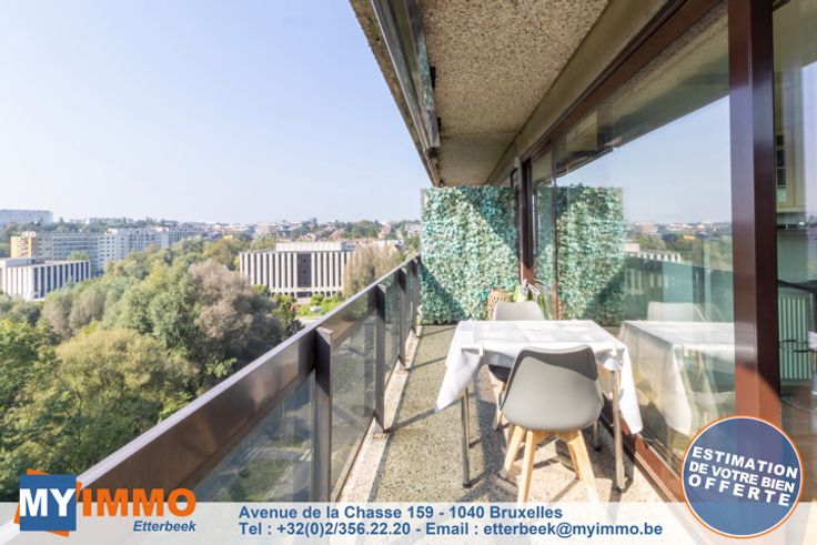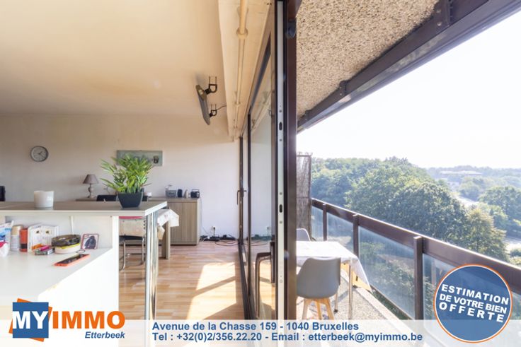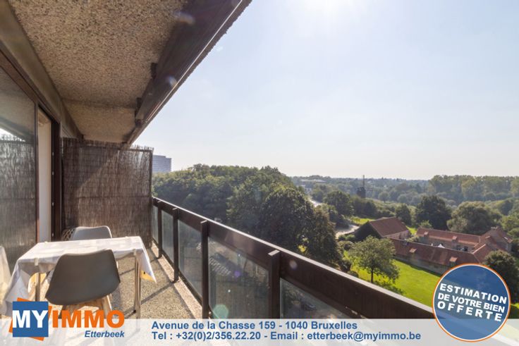 Kapelleveld/UCL - MYIMMO Etterbeek heeft een exclusief aanbod voor deze prachtige doorloopflat op de 9e/12e verdieping, die uitzonderlijk licht is en als volgt is samengesteld: Inkomhal met bergruimte die toegang geeft tot een grote woonkamer van +-32m2 en een ingerichte keuken van +-8m2, zuidwestelijk georiënteerd terras van +- 8,5m2 dat een bucolisch uitzicht biedt op de beroemde hoeve Hof-Ter-Musschen. De nachthal leidt naar een mooie slaapkamer van +- 12,5m2 met een aangrenzend terras van +-4m2, doucheruimte met inloopdouche, wastafelmeubel en hangend toilet. Het condominium heeft een overdekt zwembad, een tennisbaan buiten en een gemeenschappelijke wasruimte. Er is een garagebox te koop bij de flat (verplicht) voor €25.000. Volledig verkoopdossier en bezichtigingsafspraken per telefoon op 02/356.22.20 of per e-mail: etterbeek@myimmo.be. Meer huizen op www.myimmo.be. Deze advertentie vormt geen aanbod tot verkoop, maar een prijsvoorstel waarbij de eigenaar vrij is om elk aanbod, ongeacht de prijs, te accepteren of te weigeren.
