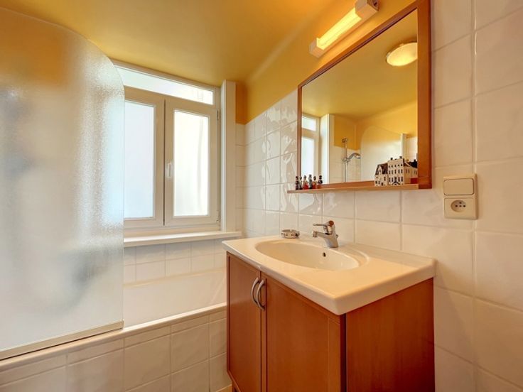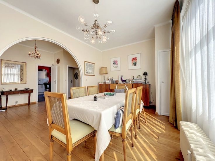 Square Vergote, een zeer gewilde, residentiële, levendige wijk dicht bij winkels, supermarkten, biologische markten, vervoer, bars, restaurants en voldoende parkeergelegenheid op straat. Technische kenmerken: videofoon, lift (nieuw), waterontharder, pvc ramen uit 2004, gepantserde deuren. Andere kenmerken: nieuwe parketvloer, veel kasten, fietskamer, open haard, nieuwe boiler 2023, geïsoleerd dak en vernieuwde gevel.