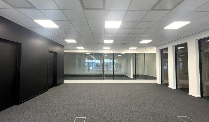 Specificaties kantoor: landschapskantoor, inbouw led-armaturen, kitchenette met toestellen en sanitair H/D per verdieping, verwarming en koeling met VRV-units, breedbandverbinding, afwerking op maat mogelijk