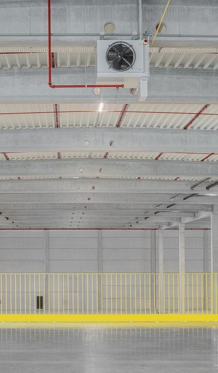 Specificaties magazijn: vrije hoogte: 13,7m, sectionale poort per unit, laadkades met dockleveller (1/1000), led-armaturen, polybetonvloer (5T/m² en 1T/m² op mezzanine), ESFR-sprinklersysteem, drijfkracht, brandalarm, verwarming (tot 12°C), ventilatiesysteem, afgesloten terrein