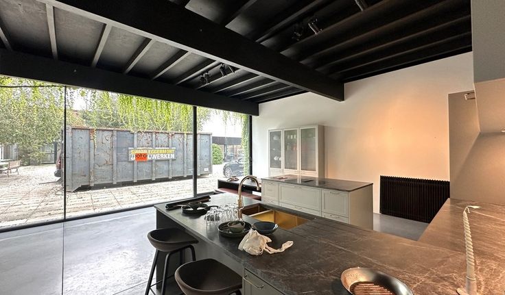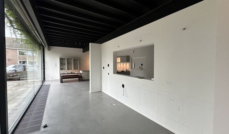 Specificaties: aluminium schrijnwerk met dubbel glas (opengaande ramen), open zoldering met opbouw spots, polybetonvloer en parket, warmtepomp, telenetaansluiting, laadpalen bezoekersparking, zonnepanelen, terras