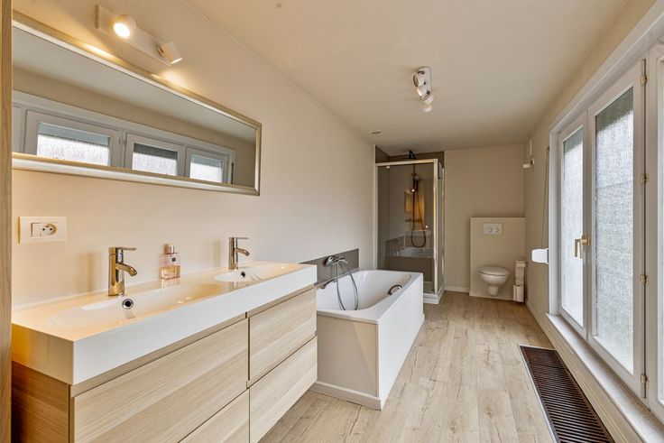 1ste verdiep : 2 ruime slaapkamers met aansluitend badkamer met bad en douche, toilet en dubbele lavabo.