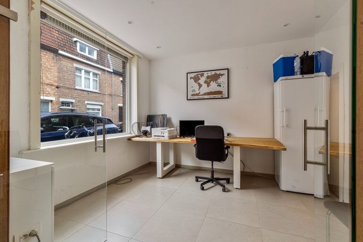 Indeling : inkom, bureau , leefruimte met open keuken , berging , toilet, stadstuintje