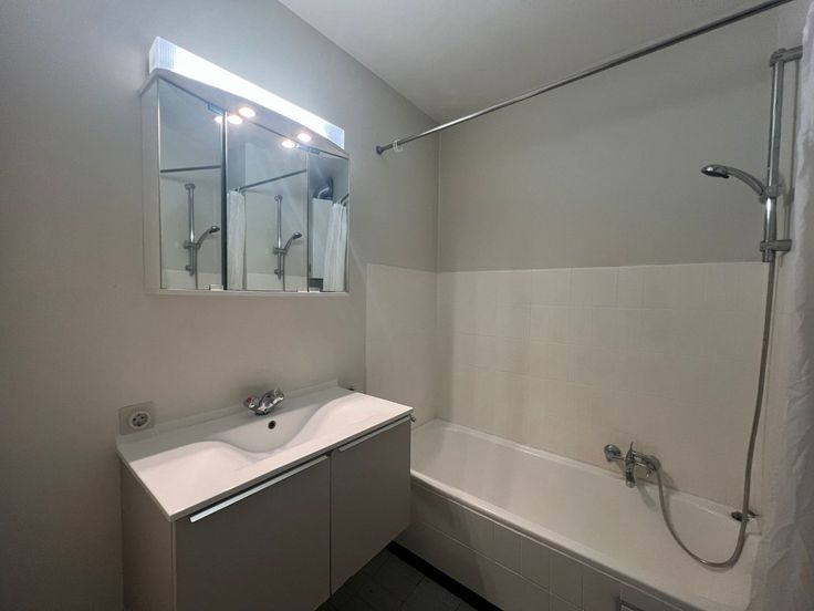 De nachthal geeft uit op de 2 slaapkamers (waarvan 1 met toegang heeft tot het balkon) en een badkamer met ligbad, wastafel in meubel en voorziening voor wasmachine.