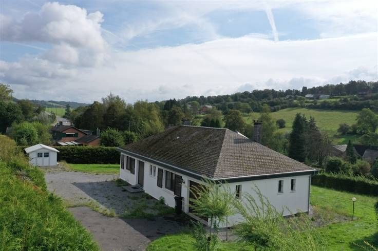 Zeer aangename bungalow met tuin, terras, garage en vrij uitzicht op de beboste heuvels in de verte. Goed onderhouden en in goede staat. Ind : inkom, ingerichte keuken, woon/eetk, kantoorruimte, 2 (+1) slaapk, badk, wasruimte en garage. CV-olie en pelletkachel. DG PVC. Opp. perc. : 2.443 m². EPC "F" n° 20240514026587 – Meer info op www.blim.be.