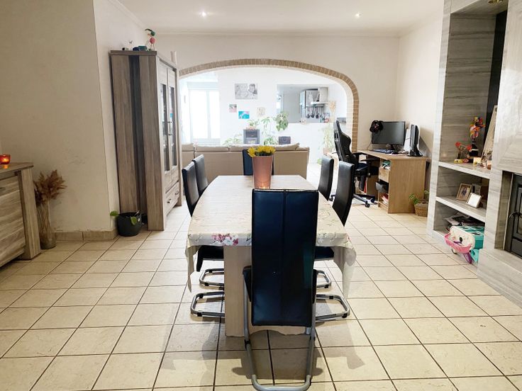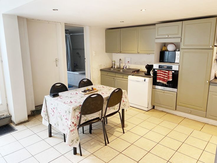Deze verder op te knappen woning met 20 zonnepanelen is rustig gelegen vlakbij het centrum van Otegem. Indeling van de woning: Ruime aparte inkom (vroegere handelsruimte), living, keuken (inductie kookplaat, dampkap, oven en vaatwasser), badkamer (ligbad met douchefunctie, lavabo en toilet). Verder zijn er op het gelijkvloers nog een garage en 2 grote bergruimtes (35 en 36 m²). De eerste verdieping herbergt 3 slaapkamers. Geïsoleerde zolderruimte. Kelder. Grote tuin. Renovatieplicht: ja
