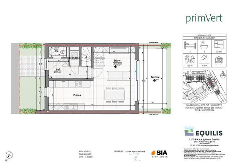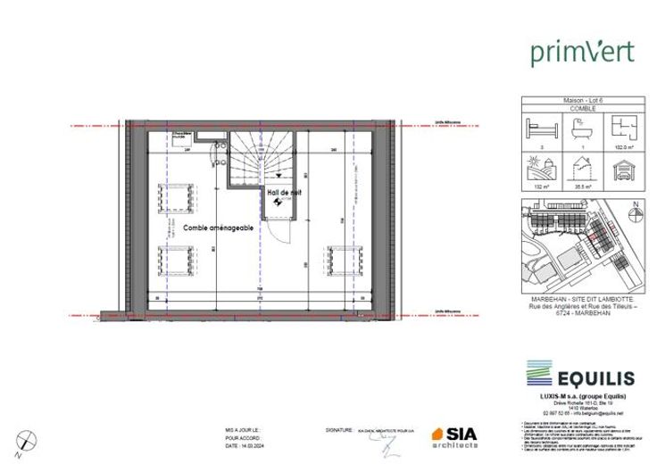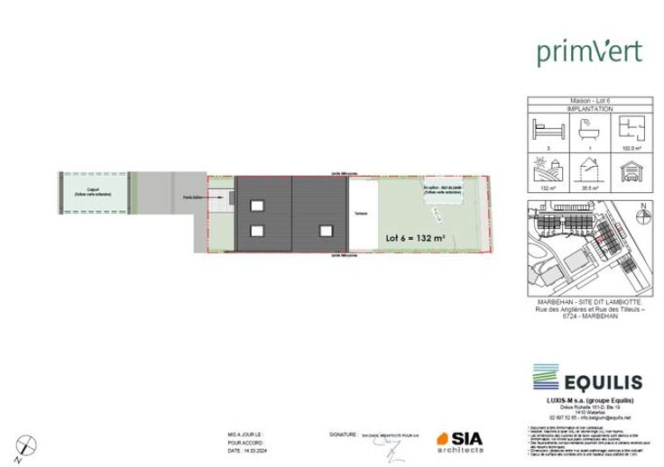 Maison 6 - PRIM'VERT, votre nouveau quartier nature à Marbehan (HABAY), propose 17 maisons et 38 appartements au coeur d'un parc de verdure. Conçu pour susciter un sentiment de liberté et de sécurité en favorisant le retour à soi et à la nature dans un environnement serein et durable, Prim’Vert fait la part belle à la mobilité douce et crée un esprit de village avec des espaces à vivre et à partager: aire récréative, potager, point d’eau et liaisons piétonnes. Les maisons offrent un grand confort avec des combles aménageables permettant de réaliser une/deux chambre(s) et une salle d'eau supplémentaires, un jardin privatif orienté sud ou sud-ouest avec terrasse, deux emplacements de parkings dont un carport et des équipements performants: chaudière gaz à condensation individuelle, double vitrage PVC, façade isolante, ventilation double flux, cuisine équipée et sanitaires (inclus), PEB A et A+. Les prix annoncés s’entendent terrain + construction, hors frais de vente (TVA, notaire, acte de base, frais de raccordements) et incluent un parking ainsi qu'un carport par habitation. Renseignements et présentation du projet : Astrid BACKES - a.backes@treviluxembourg.be +32 (0)491 11 48 50 - www.treviluxembourg.be - projets neufs