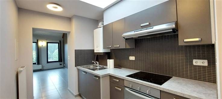 2 ème étage : living, cuisine équipée - évier, taque, four et hotte -, salle de douche, wc, 1 chambre