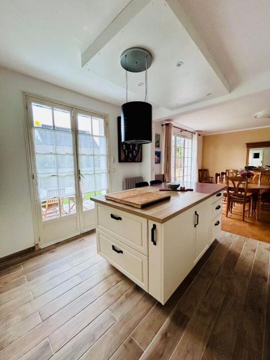 Au rez-de-chaussée : entrée, cuisine ouverte sur un double salon-séjour.