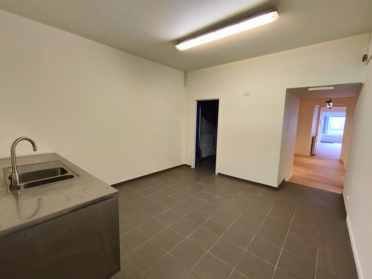Immo3000 heeft een super goed gelegen handelshuis te huur (combi handel + woonst achteraan) in de Tiensestraat te Leuven. Het pand betrekt zo maar even 145m2 bruikbare oppervlakte en is in het voorste deel ingericht voor gebruik als kantoor/handel en achteraan als een 1 slaapkamer appartement met kitchenette. U heeft de mogelijkheid om achteraan een staanplaats bij te huren twv 100,- euro/maand.