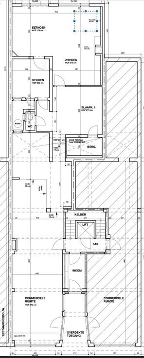 De handelsruimte is ideaal gelegen voor de uitbating van een kantoor of vrij beroeper, maar werd in het verleden ook gebruikt als horeca (broodjeszaak). Alles is mogelijk!