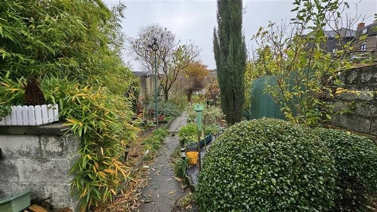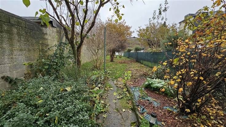 Rez: Hall d'entrée, salon, coin bureau, salle à manger, cuisine meublée, salle de douche, cour, jardin.
