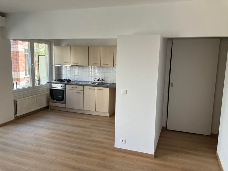 Idéalement situé à proximité immédiate de la place Brugmann (Ixelles), des commerces et des transports en commun, ce flat lumineux au 1er étage d'une superficie de +/- 55 m² a été entièrement rénové avec des matériaux de qualité.