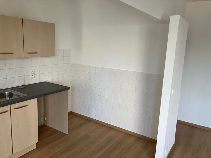 - Une cuisine américaine semi-équipée avec emplacements pour lave-vaisselle, machine à laver, séchoir et frigo