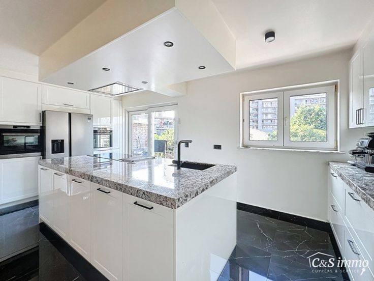 Deze prachtige bel-etage woning, gelegen aan de grens van Merksem en Schoten in een rustige, groene dreef, biedt u een perfecte combinatie van ruimte, comfort en elegantie. Bij het betreden van de woning op het gelijkvloers, vindt u een royale garage met plaats voor twee auto’s. Daarnaast bevindt zich hier een praktische technische ruimte, voorzien van een wasplaats en ingemaakte kasten. Een ruime kamer, momenteel in gebruik als slaapkamer, biedt veelzijdige mogelijkheden; deze kan eenvoudig worden omgetoverd tot een bureau of een ruimte voor een vrij beroep. De onderhoudsvriendelijke, zuidgerichte tuin vormt een ideale plek om te ontspannen en van de zon te genieten. Op de eerste verdieping wordt u verwelkomd door een ruime en lichte leefruimte met een moderne cinewall. De hoogwaardige A+ laminaatvloer geeft de woning een warme uitstraling. De volledig vernieuwde keuken is een parel voor elke kookliefhebber, uitgerust met een keukeneiland en alle moderne toestellen zoals een inductievuur, dampkap, dubbele koelkast met vriezer en ijsblokjesfunctie, microgolfoven, traditionele oven en vaatwasser. Het grote schuifraam geeft toegang tot zuidgericht terras, waar u kan genieten van de namiddagzon. De tweede verdieping herbergt een luxe badkamer met een hoekbad, inloopdouche, dubbele lavabo en toilet. Twee ruime slaapkamers bieden comfort en rust. Op de derde verdieping bevindt zich de royale masterbedroom, een oase van rust en ruimte. Deze instapklare woning is met zorg afgewerkt