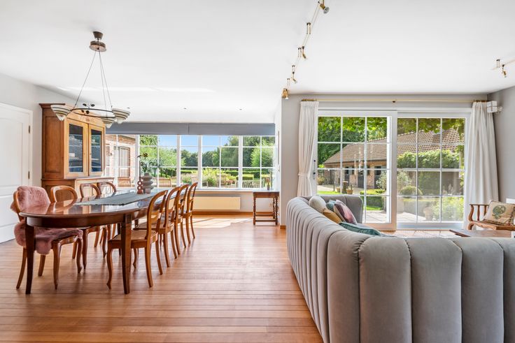 Unieke villa gelegen op een grondoppervlakte van 2.757m² met aansluitend weilanden (6 percelen van in totaal 31.231m²) die mogelijk zijn om bij te kopen en niet mee in de vraagprijs zitten. Het pand omvat een ruime woonoppervlakte van ca. 519m², verdeeld over twee verdiepingen en een volledig afgewerkte zolder. De villa beschikt over 3 slaapkamers, 2 badkamers, een multifunctionele ruimte voor nog extra slaapkamers te creëren indien gewenst en een luxueuze leefruimte met een open haard, een geïnstalleerde keuken aan de tuinzijde en een overdekt zwembad (10x5 meter, sauna, kleedkamers en inloopdouche) om van te genieten. Verder op het perceel van de woning voor de paardenliefhebbers is er een stal met 3 boxen, zadelkamer en voederlokaal, en een buitenzitplaats met open haard.