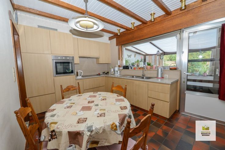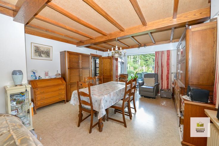 Op zoek naar een ruime woning met afzonderlijke garage en grote tuin in het centrum van Beernem? Dan is deze woning zeker de moeite waard! Gelegen nabij het sportcomplex, het station, scholen en op 5min van oprit van E40 vindt u deze verzorgde woning met 3 ruime slaapkamers. De woning heeft volgende indeling: inkomhal, lichtrijke living, eiken keuken geplaatst in 2013 uitgerust met een ingebouwde frigo, oven en kookplaat, toilet, garage die gebruikt wordt als wasplaats met douche, verwarmingsinstallatie (Buderus 2005) en een recente sectionaalpoort, ook is er palend aan de keuken een veranda. Op de verdieping bevinden zich 3 ruime slaapkamers, een opbergruimte en een ruime badkamer met ligbad, lavabomeubel en recent geplaatst hangtoilet. Via de uitschuiftrap kom je op de zolder waarvan de vloerplaat geïsoleerd is. Achter de woning is er een grote tuin met terras, een gemetste garage van 30m2 en en tuinhuis. Liefhebbers van een moestuin zullen ook veel plezier hebben aan de serre. Achteraan bevinden zich verschillende fruitbomen en een notelaar. Kortom een ideale tuin voor wie graag buiten is in alle privacy.
