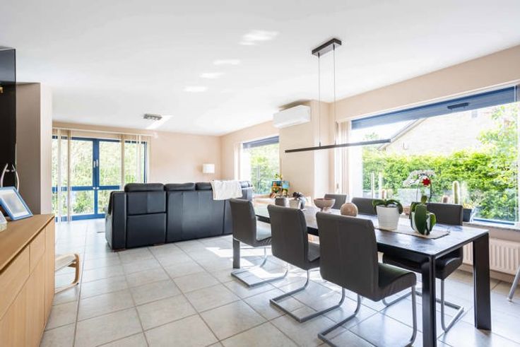 Prachtige woning gelegen in het groene en rustige Maarkedal op met vlotte verbindingen. Deze ruime woning biedt een indrukwekkend volume en energiezuinigheid, perfect voor gezinnen die op zoek zijn naar comfort en stijlvol wonen. De indeling van de woning is doordacht, met aandacht voor functionaliteit en gebruiksgemak en gaat als volgt: Ruime inkomhal, koele berging, grote garage met alle technische voorzieningen en nog eens een aparte berging. Op het eerste verdiep is een apart gemoderniseerd toilet, grote overloop met glazen deur die kan dienen als bureau of speelruimte gevolgd door de ruime living bestaande uit salon en eetkamer. De half gesloten keuken is voorzien van moderne apparatuur en hoogwaardige afwerking. Naast de keuken is er nog een aparte berging met wasmachinevoorzieningen. Boven zijn er 3 ruime slaapkamers allemaal voorzien van een individuele warmtepomp en de moderne badkamer met inloopdouche, lavabo en toilet. De woning voldoet aan al het hedendaags comfort met o.a overal dubbele hoogrendementsbeglazing met zonnescreen en driedubbel met rolluiken in de slaapkamers, centrale verwarming op mazout met nieuwe condensketel en warmtepomp(lucht/lucht) in combinatie met 15 zonnepanelen zorgen voor efficiënte en energiezuinige verwarming. Buiten biedt de woning een aangename ruime tuin met 2 terrassen voorzien van elektrische zonneluifels , ideaal voor ontspanning en buitenactiviteiten. BEZOEKDAG ZATERDAG 28/09 tussen 10u & 12u OP AFSPRAAK