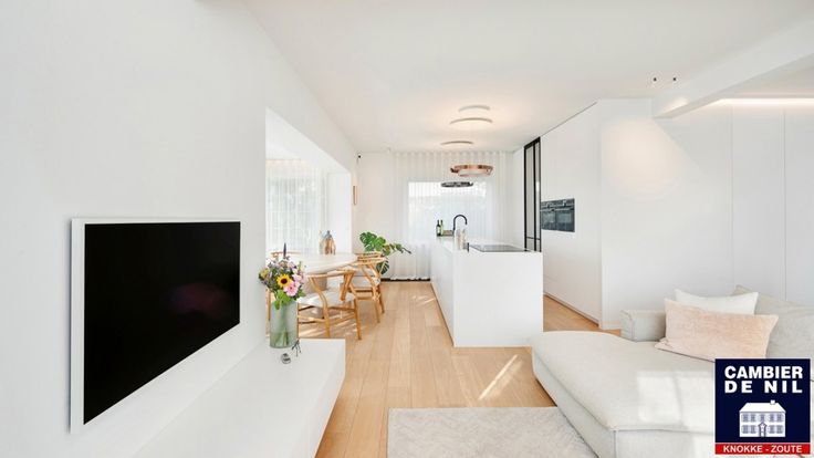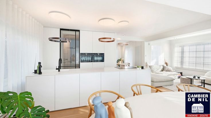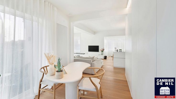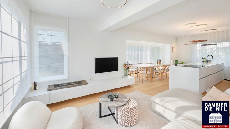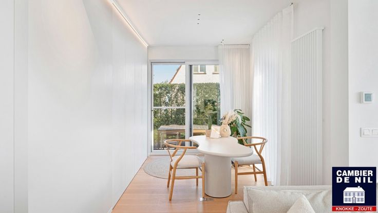 Indeling: Inkomhal met vestiaire en toilet, lichtrijke woonkamer uitgevend op het terras, eethoek en volledig ingerichte keuken.