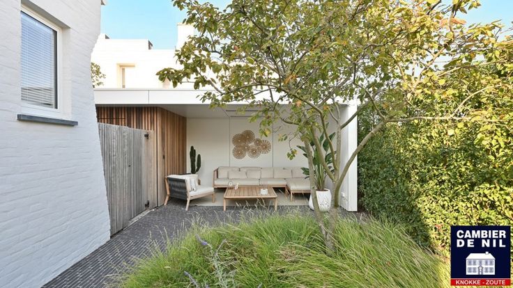 Aangenaam terras, overdekte lounge, meerdere parkings buiten en garage.