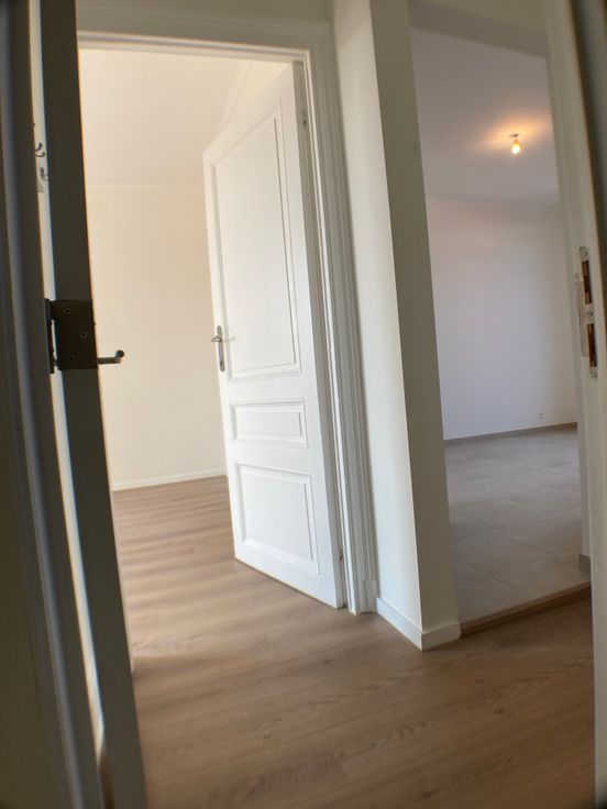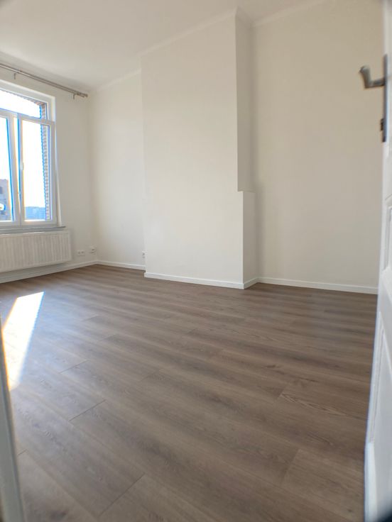 Anderlecht Centre. Joli petit appartement entièrement rénové au 2ième étage d'une maison sans charge de commun; petit hall, living avec cuisine équipée, chambre, salle de douche/ Wc avec espace machine, débarras/ vestiaire à l'entresol. Provisions d'eau 20€; de gaz (chaudière à condensation) 55€. Électricité: compteur individuel. Assurance incendie immeuble comprise dans le loyer. Le premier contact se fait par e-mail, merci.