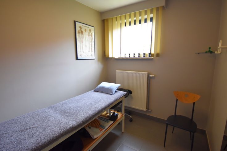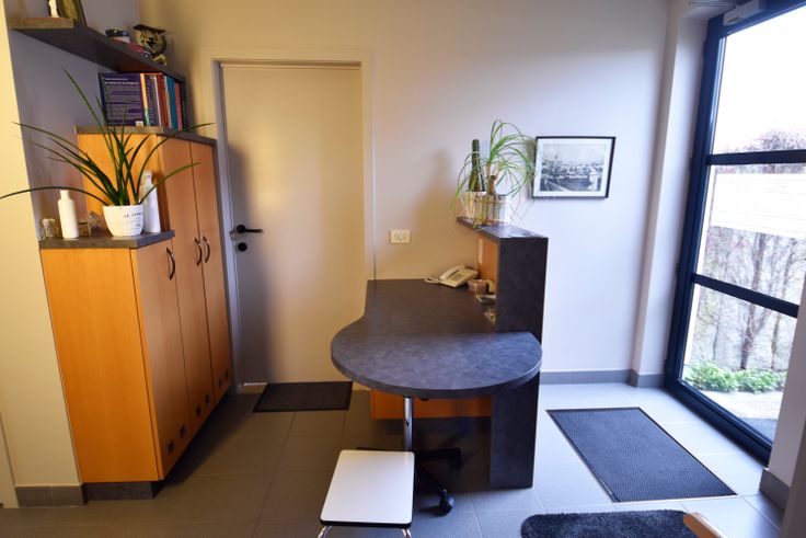 De praktijkruimte heeft een onthaal met een wachtzaal, 2 kabinetten en een oefenruimte.