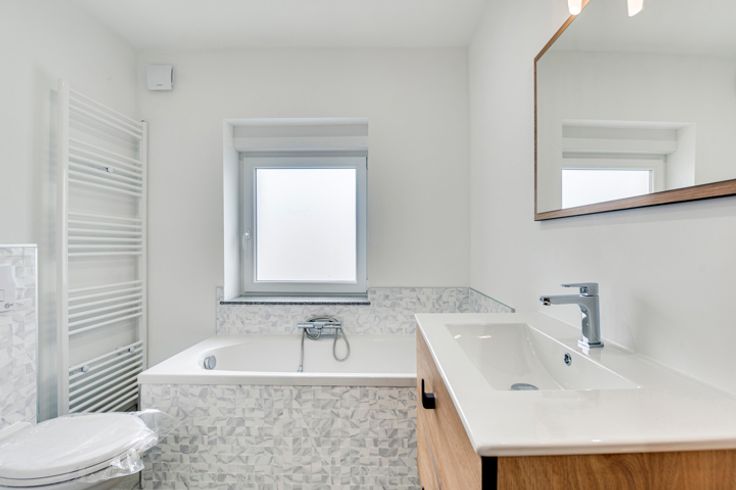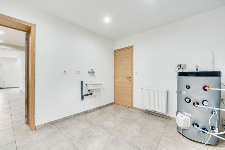 Uitrusting +++: Volledige renovatie van het pand in 2024 (DV PVC-kozijn met elektrische rolluiken, COMPLIANT elektriciteit met overal inbouwspots, 2x 5000L regenwatertank met hydrofoorgroep, nieuw en geïsoleerd dak, pleisterwerk op 3 gevels met isolatie, automatische sectionaaldeur voor de garage, ...), centrale verwarming op olie, ...