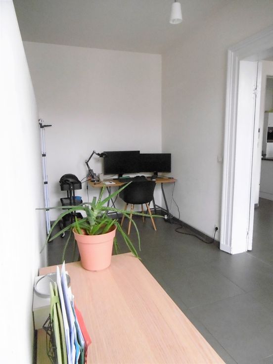 Indeling : inkomhall, living, geïnstalleerde keuken, badkamer (met douche, lavabo, toilet), berging met aansluiting voor wasmachine en droogkast, slaapkamer met extra ruimte voor dressing/bureau/logeerbed.