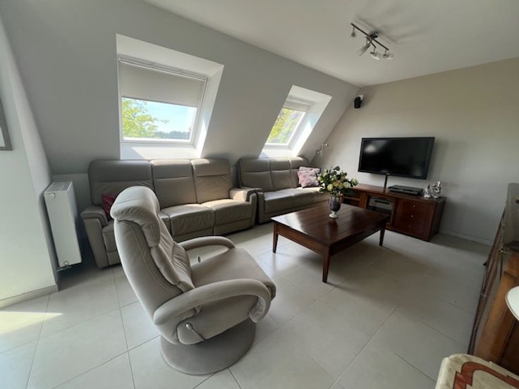 inkomhal, aparte wc sfeervolle living met aanpalende hoekterras zodat u steeds van de zon kan genieten , eethoek , ingerichte moderne keuken , ruime berging / wasplaats , 2 slaapkamers waarvan 1 met ingemaakte kasten