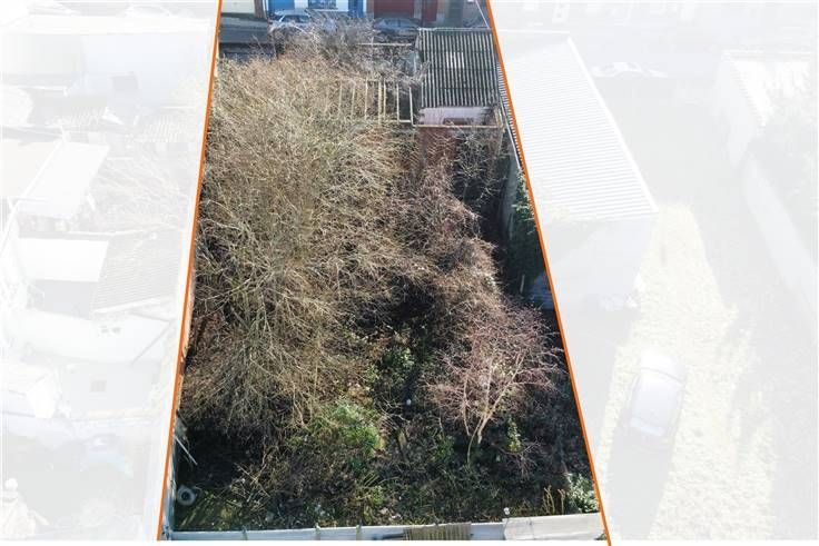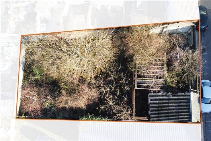 Après consultation de l'urbanisme, le terrain peut être divisé en 2 parcelles, permettant la construction de 2 maisons unifamiliales (aujourd'hui, le terrain est constitué de 3 parcelles cadastrales; présence de garages à l'état de ruines à l'avant).