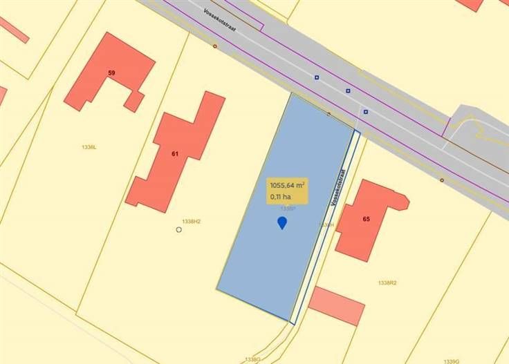 Centraal gelegen bouwgrond in een bosrijk gebied te Vossekotstraat, Sint-Niklaas. U beschikt over een oppervlakte van 1241m² (straatbreedte 18,6 meter - diepte 54,6 meter) met een zuidgerichte oriëntatie. Gelegen nabij invalswegen, E17, alsook het treinstation op minder dan 2 km afstand. Deze locatie heeft een mobiscore van 8,1/10.
