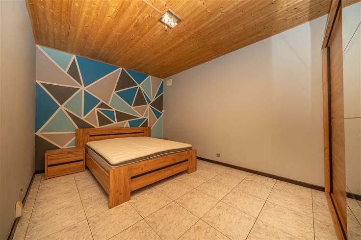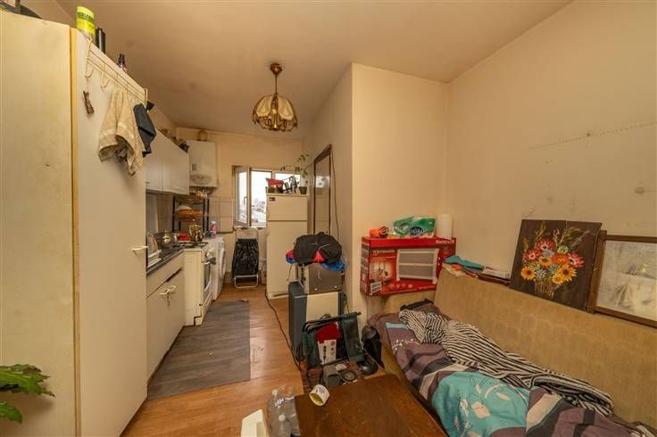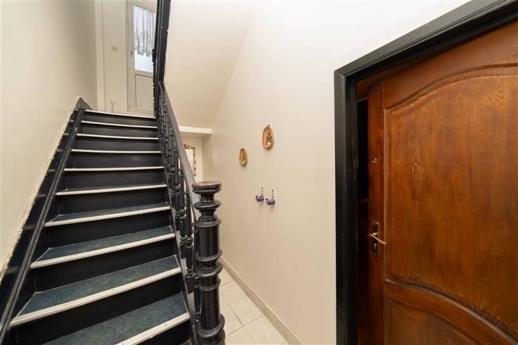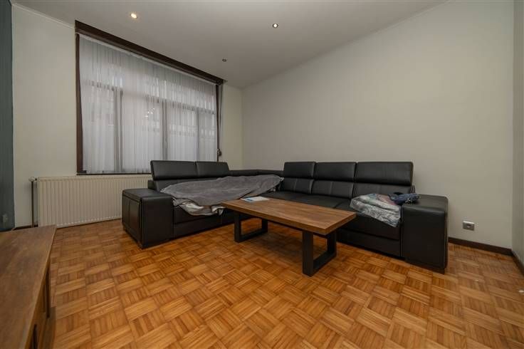 Eerste verdieping (65m2) - APPARTEMENT 2: gemeenschappelijke traphall, salon (4m40x3m00), keuken (3m70x3m00), slaapkamer 1 (4m60x4m40), badkamer (1m20x3m10)