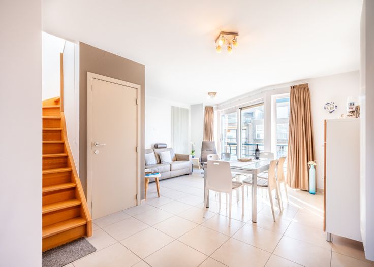 Ontsnappen aan de dagelijkse drukte ? Of iedere dag ontwaken als god in Frankrijk? Kortom, een “pied à terre” aan Zee? Penthouse appartement met 2 slaapkamers en gigantisch zonneterras te koop in de residentie Dali. Deze recente (bouwjaar 2004) residentie bevindt zich vlakbij zee en de Sint-André duinen: de perfecte ligging voor uw zonnig tweede verlbijf of uw vaste woonst! Op het west gericht terras kan u genieten van een zijdelings zicht op zee, vanop het oost gericht terras kan u genieten van een zicht op de Schipgatduinen.  Deze duplex penthouse werd als volgt ingedeeld: Benedenverdieping: inkomhal | een knusse leefruimte uitgevend op west gericht balkon met zicht op zee | halfopen, volledig uitgeruste keuken | slaapkamer met aansluitende douchekamer | afzonderlijk toilet | trap richting bovenverdieping;  Bovenverdieping: hal uitgevend op ruim west gericht terras vooraan met zijdelings zeezicht en oost gericht terras met duinenzicht | slaapkamer uitgevend op datzelfde, west gericht terras vooraan | badkamer voorzien van bad, toilet en lavabo in meubel met aansluiting wasmachine.  Privatieve kelder aanwezig! Vlot toegankelijke en gemeenschappelijke fietsenberging op het gelijkvloers. Elektrische installatie = conform.  Op zoek naar een zonnige penthouse met gigantisch terras vlakbij zee? Contacteer ons snel voor een bezoek aan deze buitenkans! Renovatieplicht: onbekend