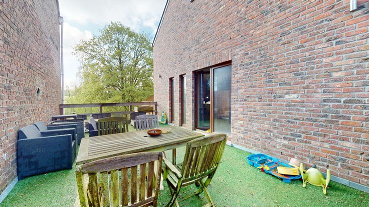 OPTION - OPTION - Visites suspendues - Situation idéale pour cette superbe "maison - appartement" triplex avec grande terrasse et garage, à deux pas de la gare et comprenant : Hall d'entrée, garage avec chaufferie et espace buanderie. Au premier : Hall, wc, séjour avec insert à pellets, cuisine équipée avec coin à déjeuner, terrasse. Au second : Hall de nuit, 2 chambres, salle de douches, accès combles, cc mazout, pvc dv,..Conditions de vente sur immovillages.com