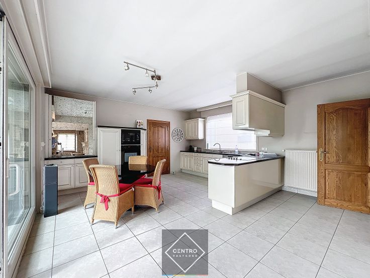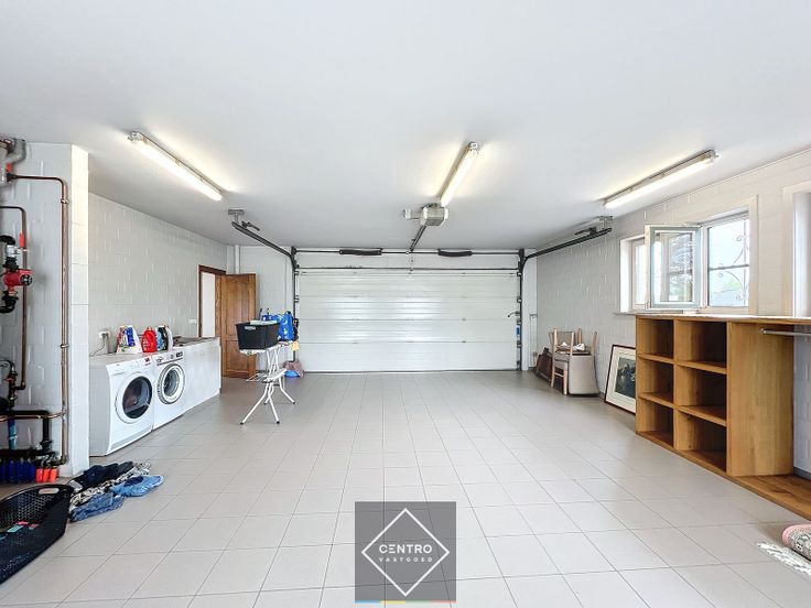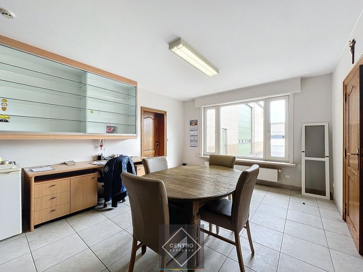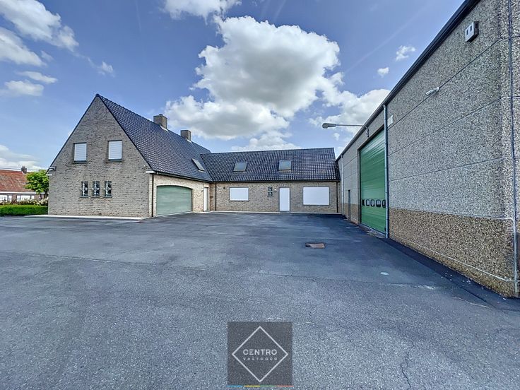 OPPERVLAKTEN: Constructie - bewoonbare oppervlakten Woning + bureel:   ± 346 m² Magazijn:  ± 750 m² Grondoppervlakte Totale grondoppervlakte: ± 2.110 m² INDELING: Woning + bureel Gelijkvloers: Inkom - ruim toilet met lavabo - lichtrijke woonkamer met open haard - veranda - volledig geïnstalleerde keuken (met alle toestellen, waaronder keramische kookplaat, vaatwas, koelkast, dampkap, oven, microgolf) - garage voor 2 wagens met voorzieningen voor was-en droogmachine - volledig aangelegde tuin met terrassen, vijver en tuinberging. Twee bureelruimtes met gastentoilet (toegankelijk via het magazijn, de woning, en via buitendeur).  Eerste verdieping : Nachthal - toilet - badkamer (met brubbelbad, inloopdouche, wastafel met dubbele lavabo) - 5 slaapkamers - archiefruimte/dressing. Zolderverdieping : toegankelijk via valluik.  Kelder : droge kelder. Magazijn:   Magazijn/werkplaats 748m² (34m x 22m), voorzien van bureel, 2 afgesloten garages, mezzanine (120m²) met vaste trap en betongewelven. AFWERKING: Woning + bureel: Gemetste constructie - tegelvloeren - muren gepleisterd en behangen - overal dubbele beglazing met houten schrijnwerk - (elektrische) rolluiken/zonnewering - eiken binnendeuren - ingemaakte kasten in nachthal en bureelruimte. Magazijn: Metalen constructie - silex betonpanelen - gepolierde en gewapende betonvloer  - geïsoleerd hellend dak met 4 lichtstraten - elektrische sectionaalpoort Crawford (B: 4,6m; H: 4,6m)  met afzonderlij... Renovatieplicht: NOT_APPLICABLE