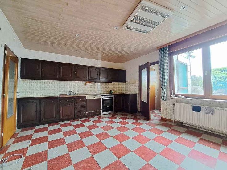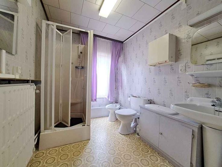 Maison Unifamiliale : hall, living, cuisine (semi-équipée), WC séparé, terrasse, jardin 3/4 chambres, salle de douche avec WC, grenier, caves...