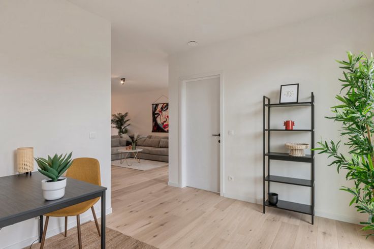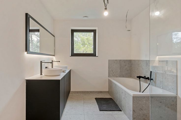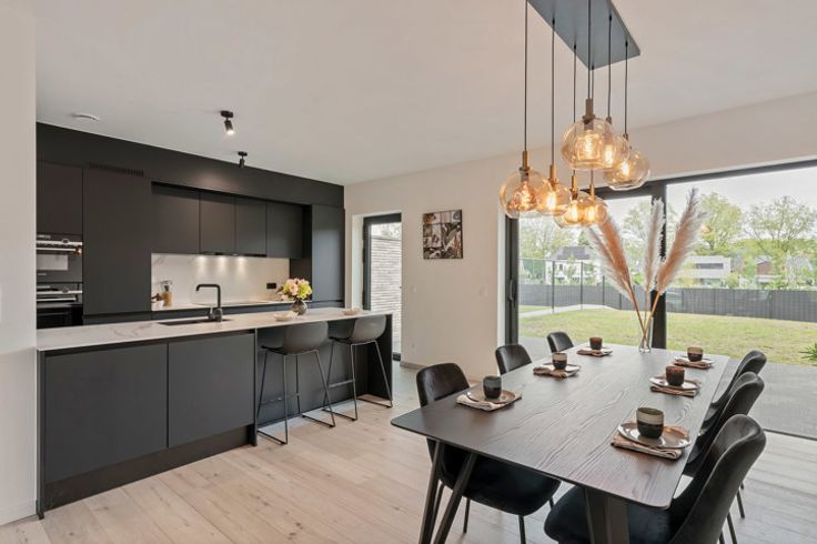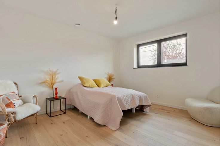 Deze moderne villa is gelegen aan de felbegeerde rand van Mol, met een uitstekende verbinding naar het centrum, zowel met de fiets, auto als met het openbaar vervoer. De villa op een villaperceel van 506m² beschikt dankzij zijn doordachte architectuur en de hogere plafonds over veel lichtinval in een luchtig geheel, met ruimtes die naadloos in elkaar over gaan. Via de grote glaspartijen achteraan krijg je vanuit de leefkeuken direct toegang tot het terras en de leuke tuin. Indien gewenst is het bureel op de gelijkvloers groot genoeg om ook als slaapkamer te gebruiken. Op de verdiepingen zijn er nog eens 4 ruime slaapkamers, waarvan de master bedroom beschikt over dressingmogelijkheid. Perfect geschikt dus voor grotere gezinnen of mensen die van ruimte houden. De kwaliteit en de materialen waarin deze villa is opgebouwd zijn echt uitstekend: top ingerichte keuken, alu ramen, parket… Er is bovendien gebruik gemaakt van de nieuwste energetische technologieën zoals warmtepomp, vloerverwarming, zonnepanelen en ventilatiesysteem D+. De uiterst energiezuinige bouwstijl zorgt voor een BEN-villa, waardoor een zeer laag verbruik is gegarandeerd. Voor verdere informatie kan U steeds terecht op ons kantoor. 014/82.15.15.