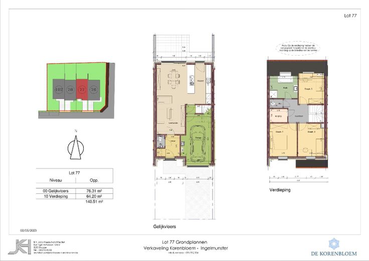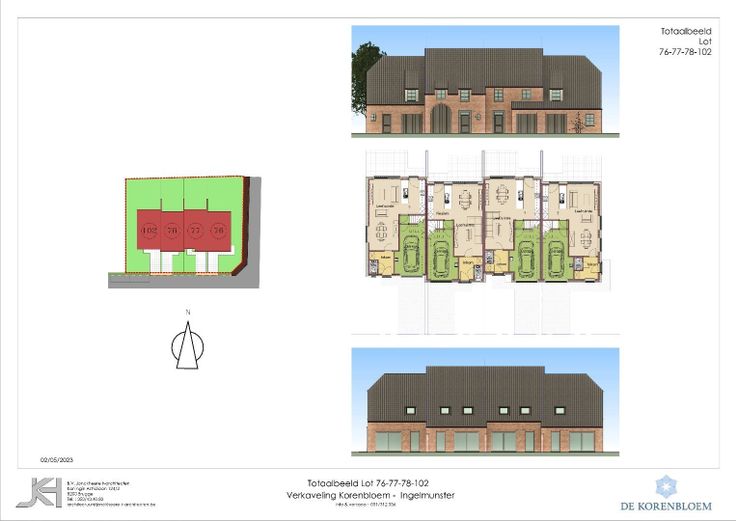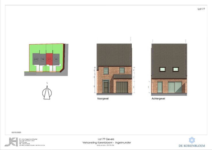 Centraal gelegen gesloten bebouwing met tegelijk een groen karakter in woonproject De Korenbloem bestaande uit inkom, toilet, ruime leefruimte met open ingerichte keuken, garage, nachthal, 3 slaapkamers, apart toilet, berging, badkamer met ligbad, douche en lavabomeubel, oprit, tuin. De woning in pastoriestijl is afgewerkt met hoogwaardige materialen, in lijn met de huidige energienormen. Gelegen op fietsafstand van winkels, scholen en gemeentelijke diensten. Tot. grondopp. : 178 m²