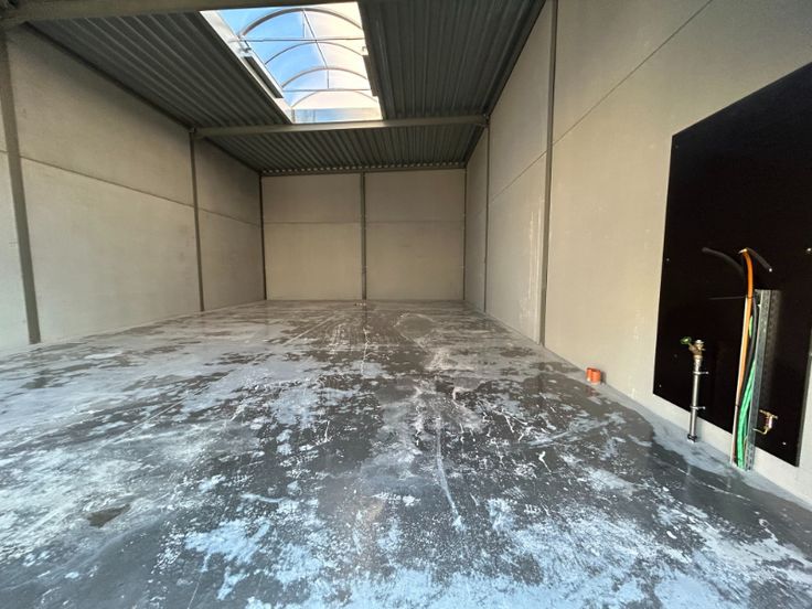 Het magazijn kan gebruikt worden als opslagruimte en/of atelierruimte. Het is opgebouwd uit een betonnen structuur met gevels in silexbeton, de vrije hoogte is circa 6 meter, dak is geïsoleerde steeldeck, TL-armaturen, koepels , polybetonvloer, drijfkracht aanwezig + voorzien van warmeluchtblazer. Sanitair mogelijk.