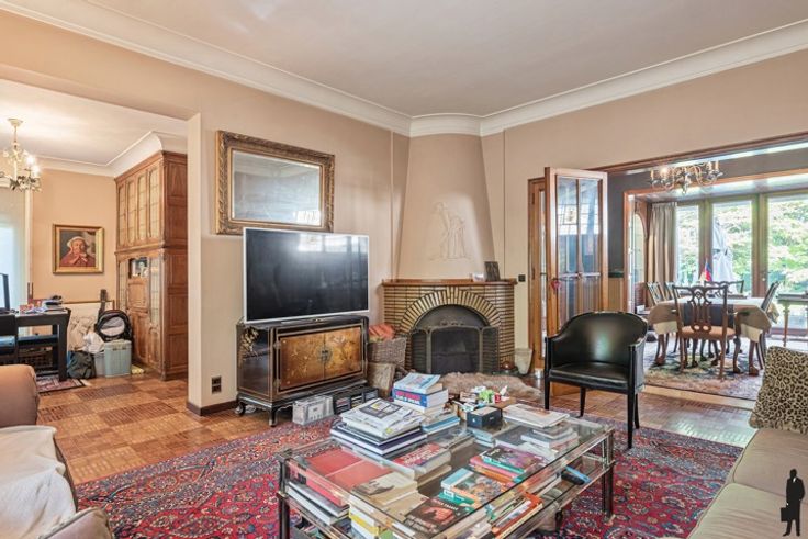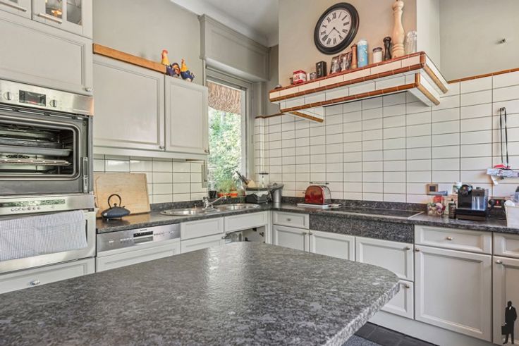Een vrijstaande villa met eigen karakter, genaamd "Koperen Hoorn" en dit op ca. 1.115m² en grenzende aan achterliggend domein waardoor je van volledige privacy geniet! De historie en de naam gaat terug naar de jaren '40 en is een combinatie van een toenmalige loodgieter (vandaar koper) en een café in Ekeren waar hij graag kwam genaamd café de Hoorn. Het is een huis met veel charme en karakter, authentieke elementen, mooie plafondhoogte en besloten diepe tuin. De gelijkvloerse verdieping: - Een inkomhal op travertin met gastentoilet en separaat handenwasser - Een woonkamer op parket met ingemaakte bibliotheek (fruithout) kasten, geglazuurde Delfts groene bakstenen schouw met open haard in smeedijzer. - Middels dubbele deur naar eetkamer. Eetkamer op travertin met openslaande dubbele glazen deur naar tuin/terras met elektr. rolluik - Een gesloten keuken (2016) op travertin en authentieke wandtegels, keramisch kookvuur (Siemens), dubbele gootsteen, vaatwasser (Siemens) en toegang naar de tuin. De eerste verdieping: - Middels handgemaakte massieve trap naar nachthal met nachttoilet - Een hoofdslaapkamer op parket en ingemaakte kasten - Een tweede en derde slaapkamer op parket met lavabo - Een badkamer (2016) met ligbad, inloopdouche, lavabo De tweede verdieping: - vierde slaapkamer en douchekamer met douche en lavabo Bijzonderheden: De villa zelf straalt charme en karakter uit, dankzij de authentieke elementen die bewaard zijn gebleven (messing, fraaie lambrisering door