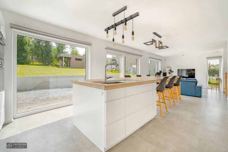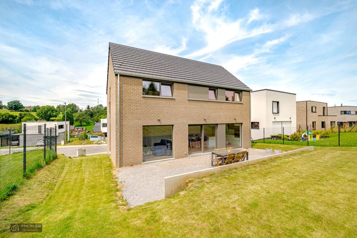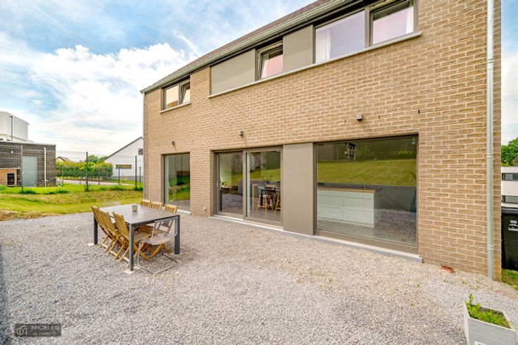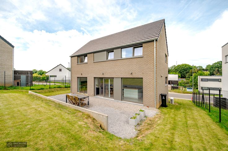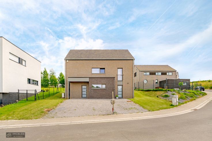 L'Immobilière de MARNEFFE biedt u, in Heure-le-Romain (Oupeye), deze recente villa uit 2020 aan, in een rustige omgeving, dichtbij Visé, de E25 en alle voorzieningen. Deze woning met 3 slaapkamers zal u verleiden met zijn volumes , zijn helderheid, zijn techniek en zijn professionele deel.