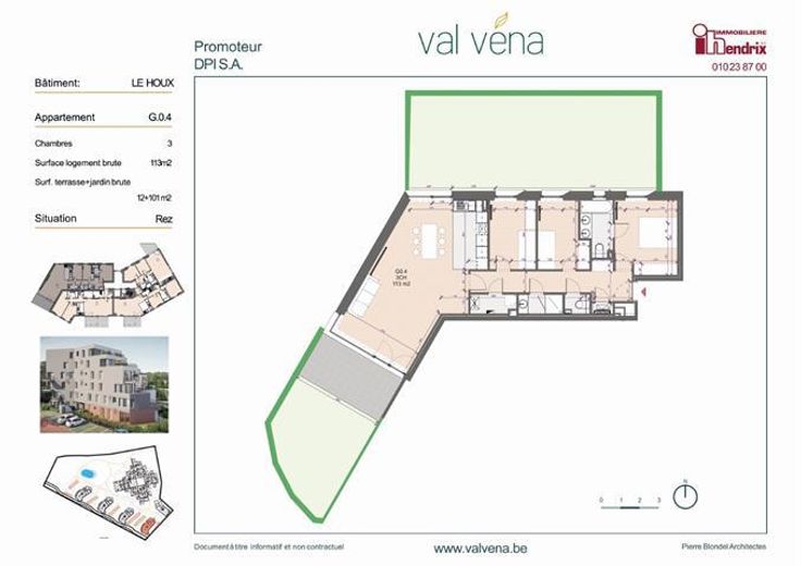 Né de la reconversion de l’ancien site Folon à Wavre, Val Véna offre un concept novateur. Ce nouveau quartier est la combinaison parfaite entre les facilités qu’offrent la vie urbaine de Wavre et le calme d’un environnement verdoyant garantissant quiétude et bien être à ses habitants. Les appartements Val Véna (1ch au 3ch et penthouse) sont entourés d’écoles de qualité, de nombreux commerces, d’une gare ferroviaire, d’un centre sportif et culturel tout en préservant l’intimité et le confort. Les plans sont travaillés de manière à ce que les bâtiments procurent à chacun ; ventilation, ensoleillement et éclairage naturel. Avec son look contemporain, le Val Véna offre tous les avantages d’une construction neuve répondant aux normes les plus récentes. Chaque appartement profite d’une belle terrasse. Au programme, des finitions de qualités : parquets et carrelages de qualité dans toutes les pièces, cuisine et salle de bains équipées et buanderie , le tout dans un look moderne et tendance. Le parc au centre de Val Véna incite à la balade et à la circulation douce (à vélo, à pieds, en transport en commun). Sa localisation rend également accessible des destinations telles que Bruxelles et Louvain-la-Neuve avec une facilité dû à sa proximité avec la gare, à la E411 et la N4.