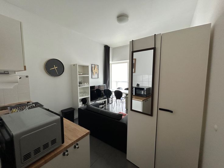 Deze recente studio gelegen op de 3de verdieping nabij Park Spoor Noord en het Eilandje omvat: