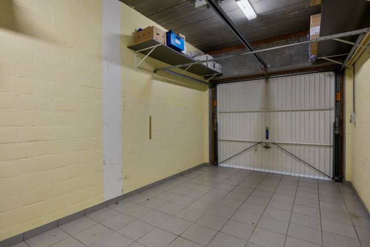 Achteraan het gebouw bevindt zich een garagebox met rechtstreeks toegang naar de traphal en lift.
