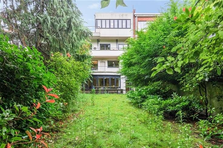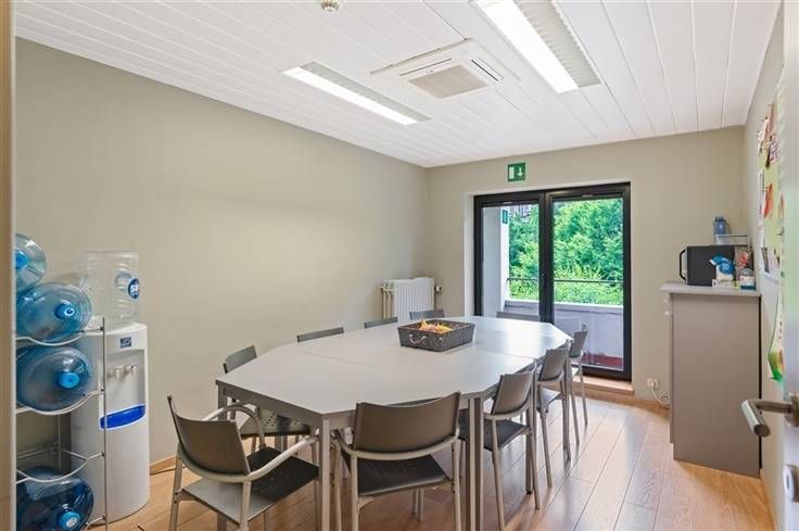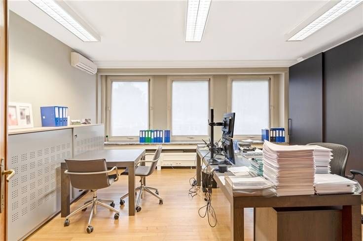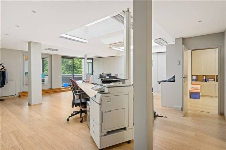 Het kantoor beschikt achteraan over verschillende terrassen met uitzicht op de tuin, er is eveneens een daktuin aanwezig.