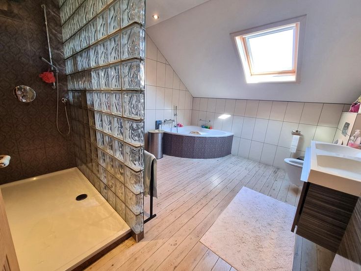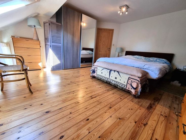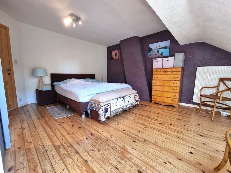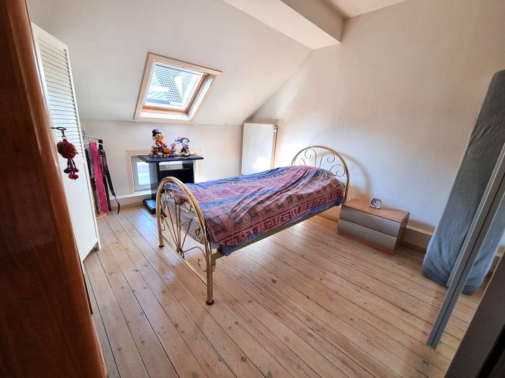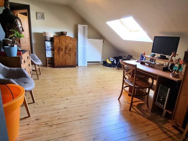 Het verdiep biedt 2 ruime slaapkamers, een grote open ruimte die perfect kan dienst doen als bureaukamer of hobby ruimte en een riante, vernieuwde badkamer voorzien van ligbad, inloopdouche, lavabomeubel en 2de toilet.